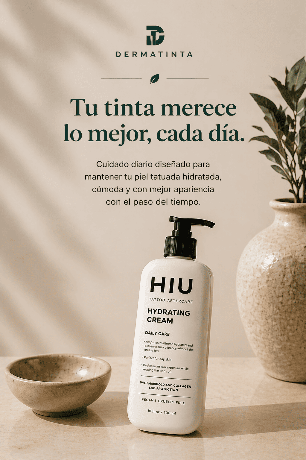 DermaTinta está pensado para el cuidado diario de la piel tatuada, especialmente en tatuajes ya cicatrizados. Su uso forma parte de una rutina de hidratación y cuidado para ayudar a mantener la piel con mejor apariencia y confort.